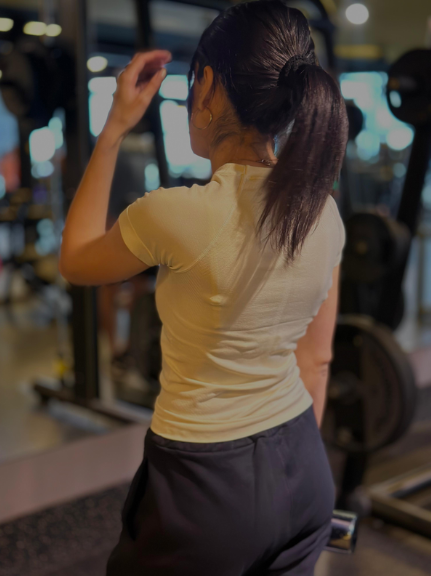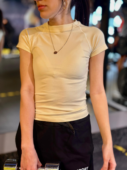 Remera de compresión beige para mujeres, diseñada para entrenamientos cómodos y efectivos. Su tejido ajustado se adapta al cuerpo brindando soporte muscular, mejora la circulación y permite libertad de movimiento. Ligera, transpirable y de secado rápido, ideal para cualquier rutina, desde el gym hasta actividades al aire libre.